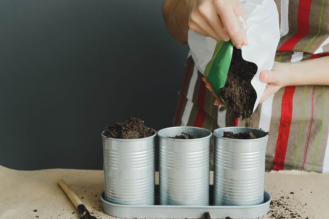 Coffee makes great fertilizer. Rather than throwing your used coffee grounds in the trash, empty out your French press or coffee filter straight into a planter.